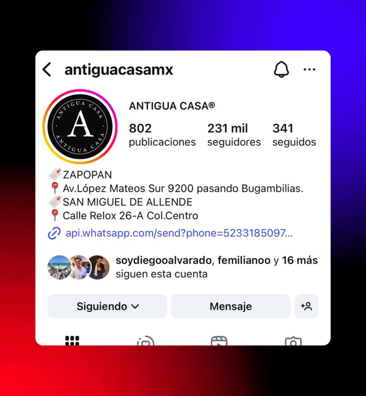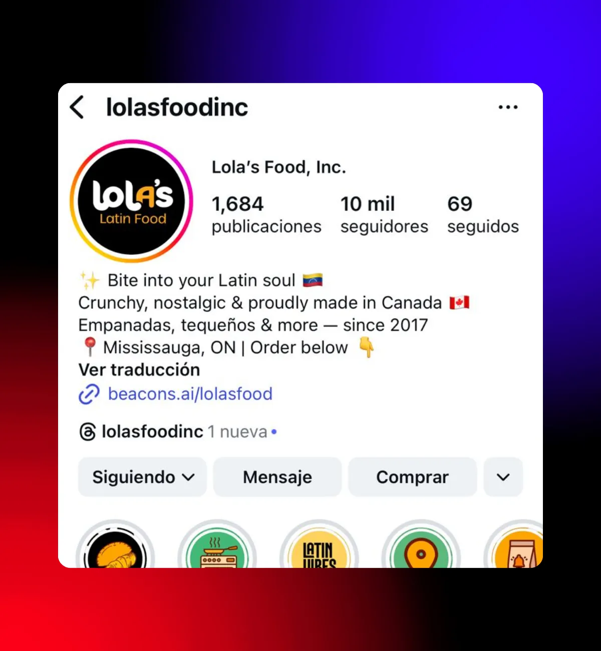 en redes sociales.